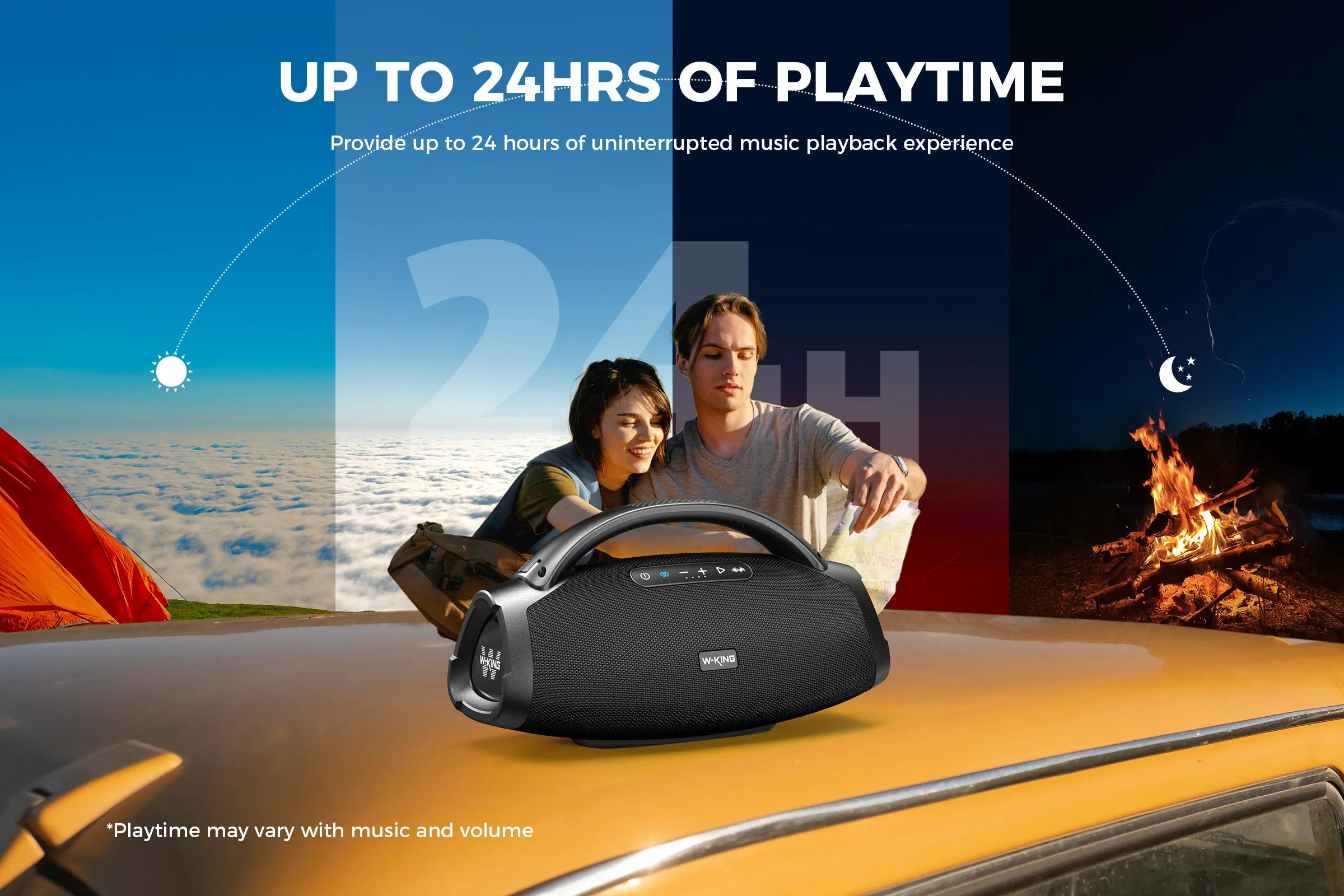 Power through full-day outings and all-night parties with up to 24 hours of uninterrupted playtime. The built-in rechargeable battery keeps the music going, so the fun never stops.