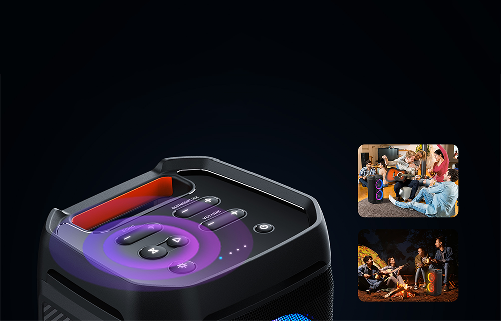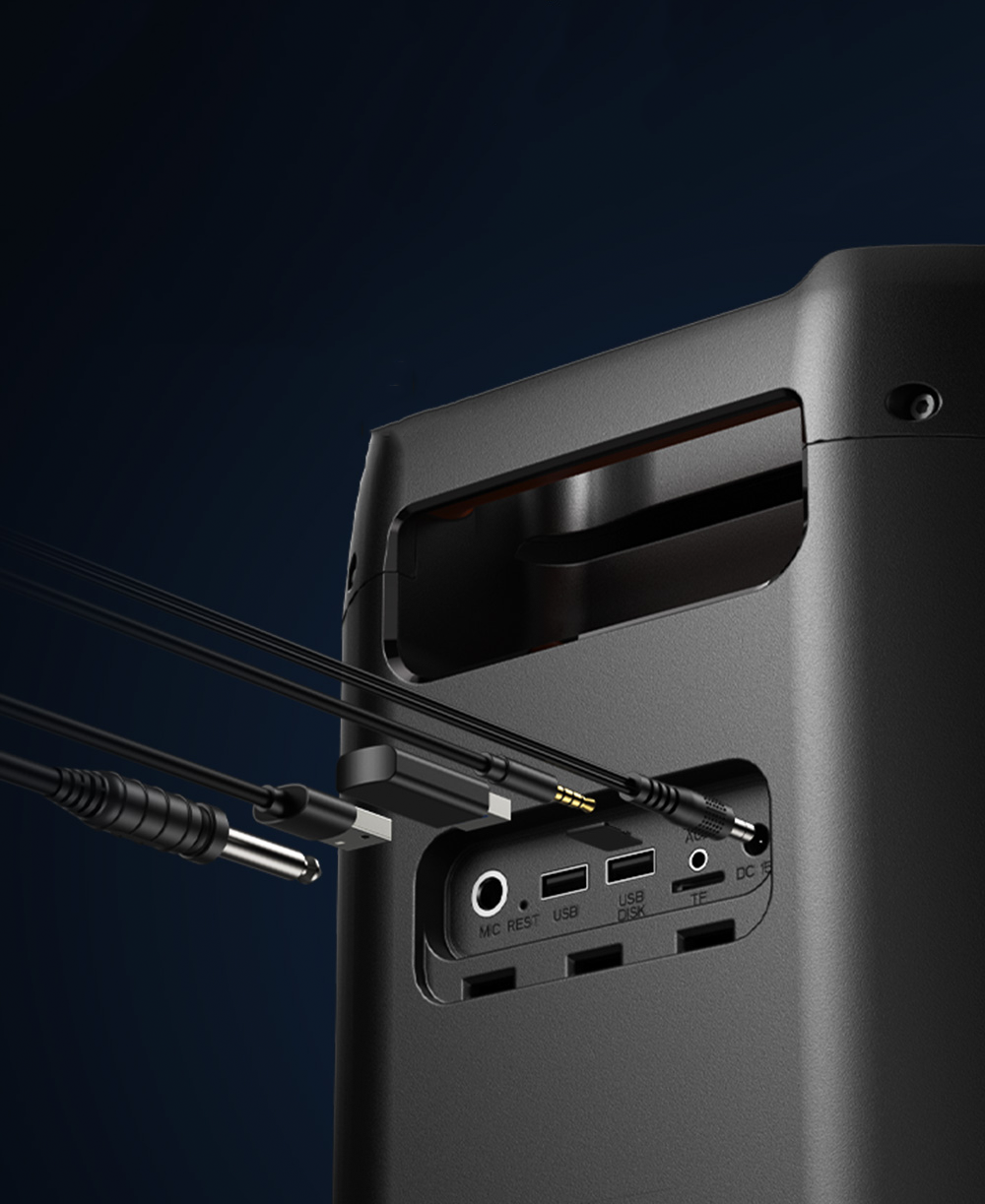 240W PEAK outpur, 2x tweeters & woofers, dual passive radiators with DSP tech for distortion - free sound. Dedicated 6.35mm jack for instruments and mics with real-time volume and echo control.