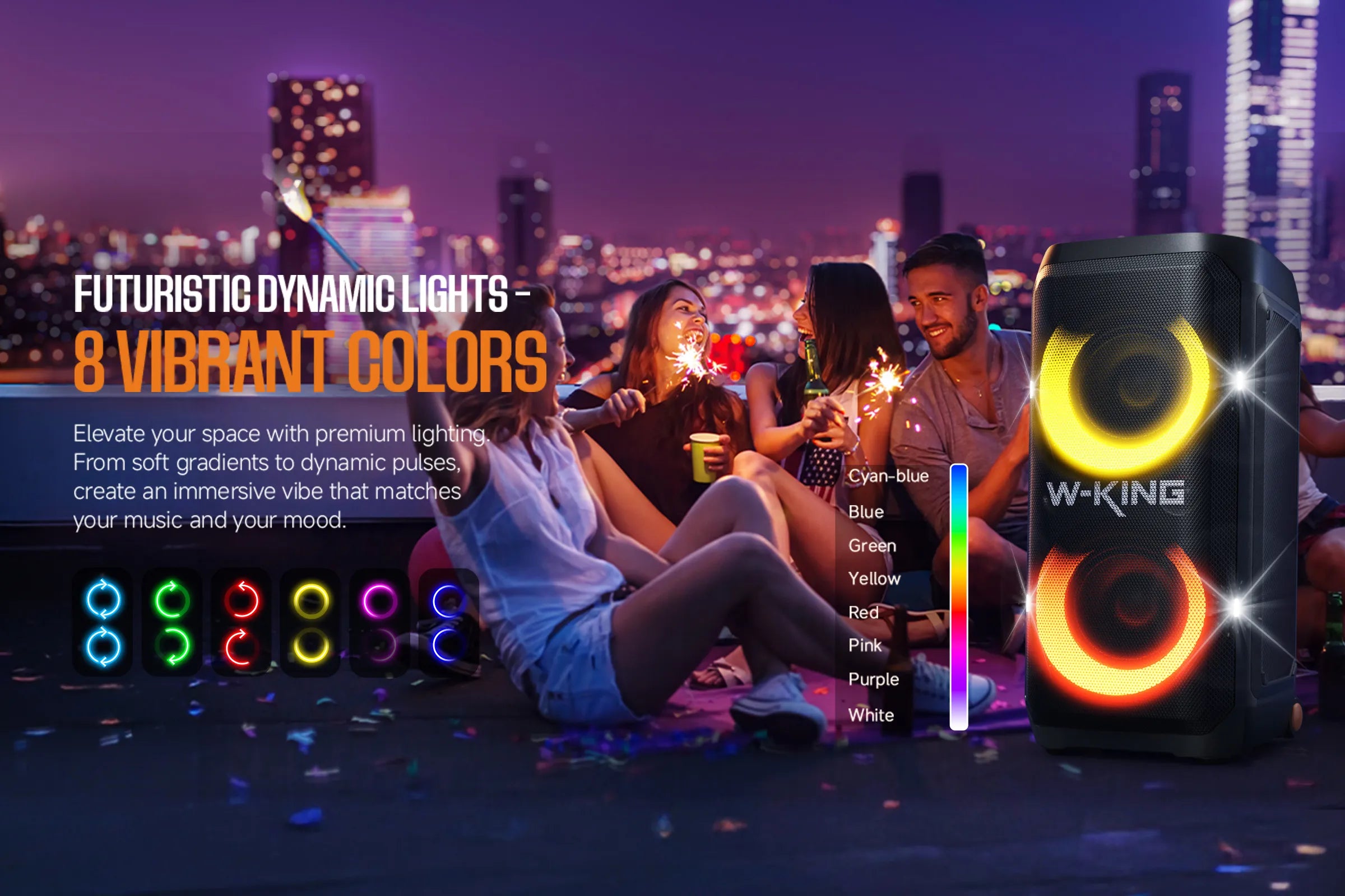 Powered by advanced DSP tuning and dual tweeters, this speaker delivers crystal-clear highs and powerful lows without distortion. Whether indoors or outdoors, it creates a live concert experience wherever you are.