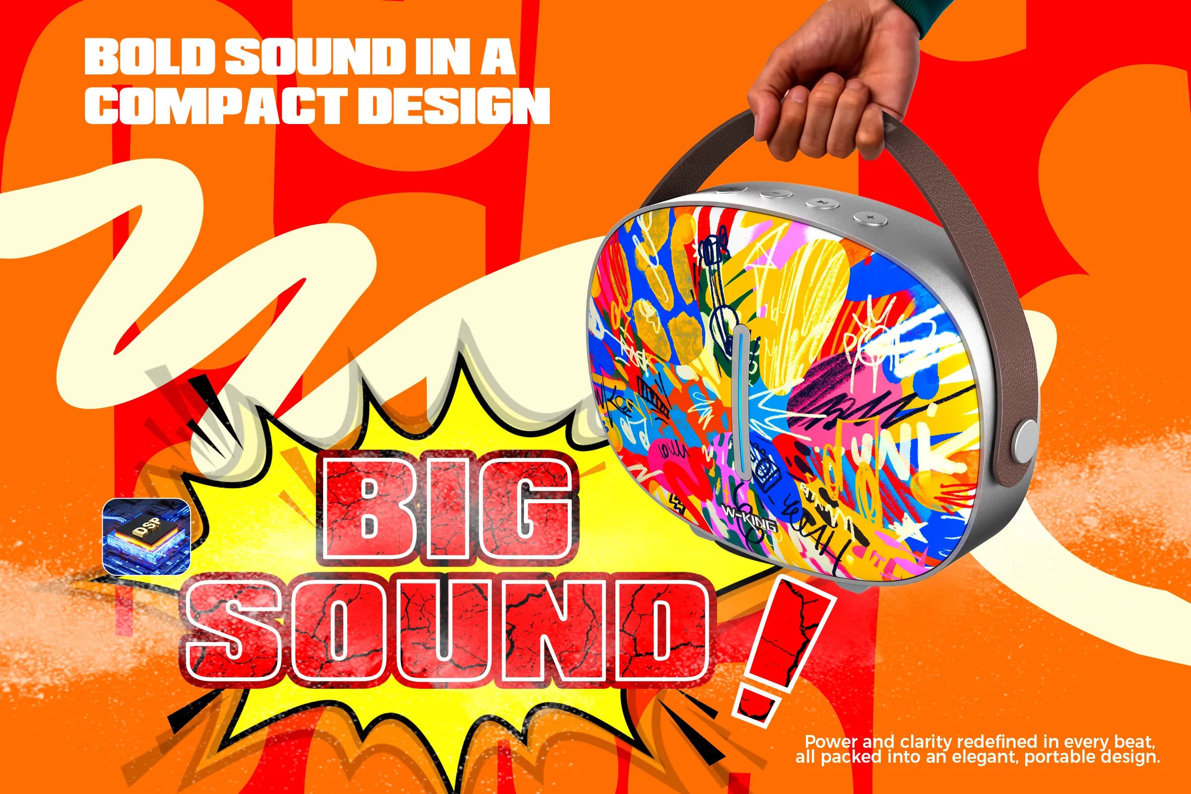 Choose from Classic Black, Cool Music Edition, and Graffiti Style to match your vibe. The premium metal frame, high-quality fabric, and lychee-textured leather handle blend style and comfort, while non-slip foot pads keep the speaker stable on any surface.