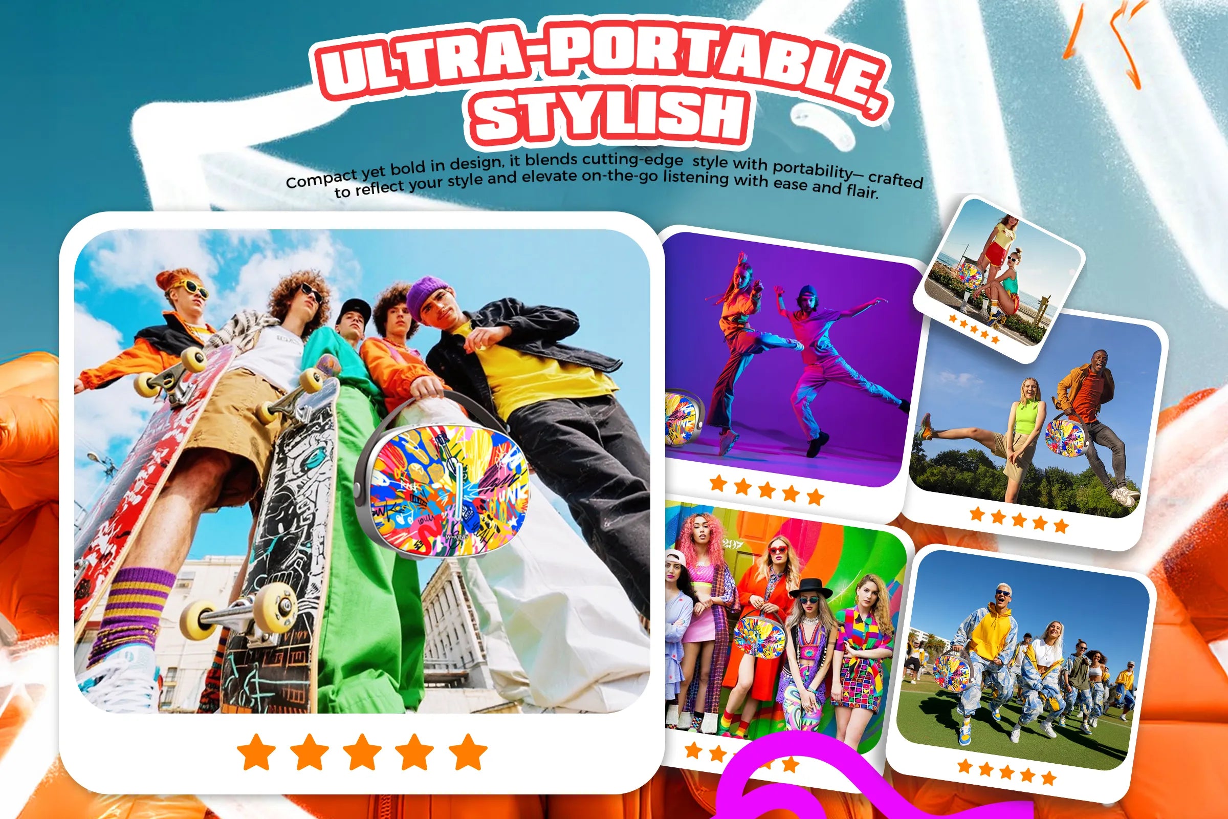 Compact yet bold in design, it blends cutting-edge style with portability. Crafted to reflect your vibe, it elevates on-the-go listening with ease and flair for every adventure.