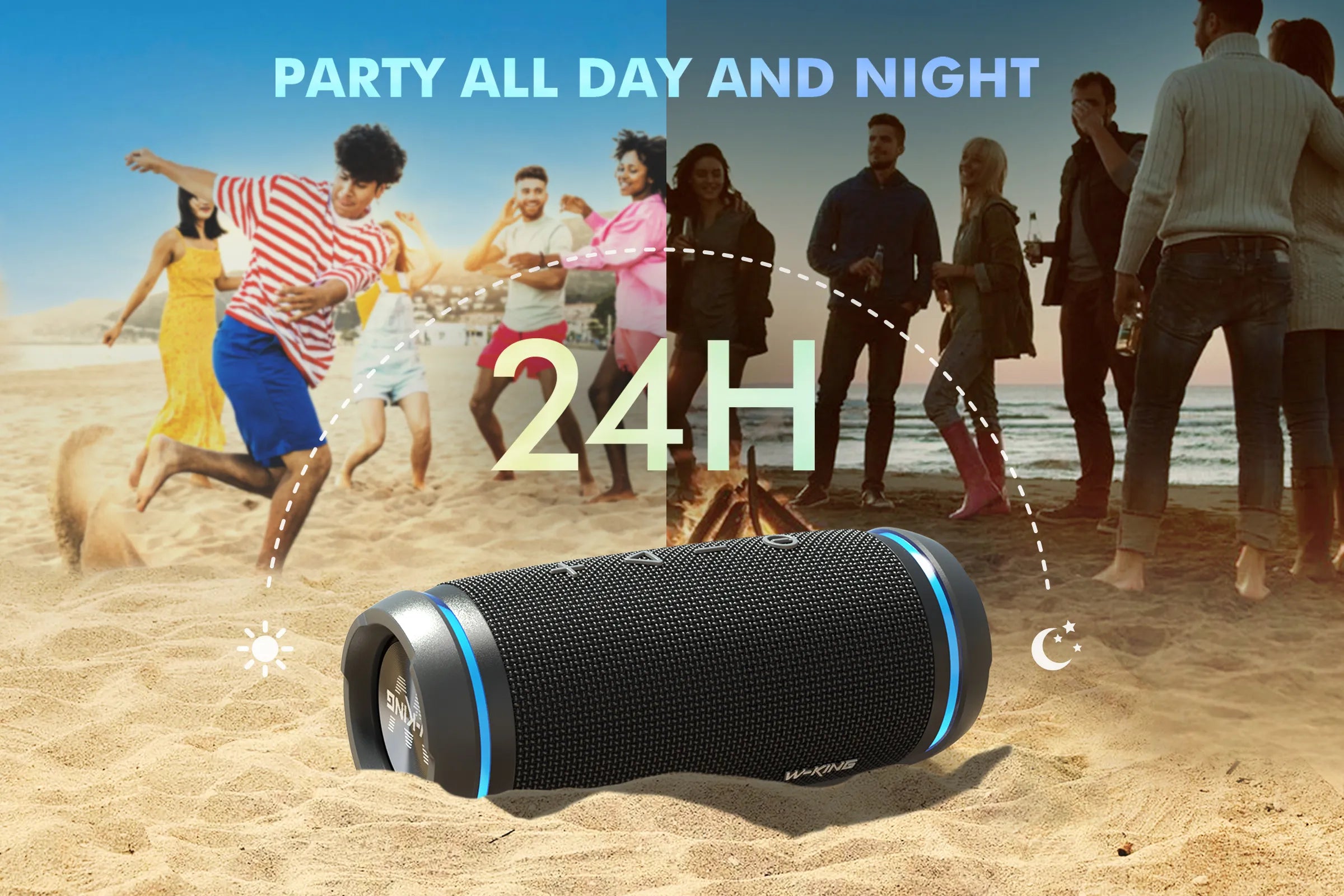 Large capacity battery supports up to 24 hours playback. Enjoy all-day parties, trips and gatherings without frequent charging.