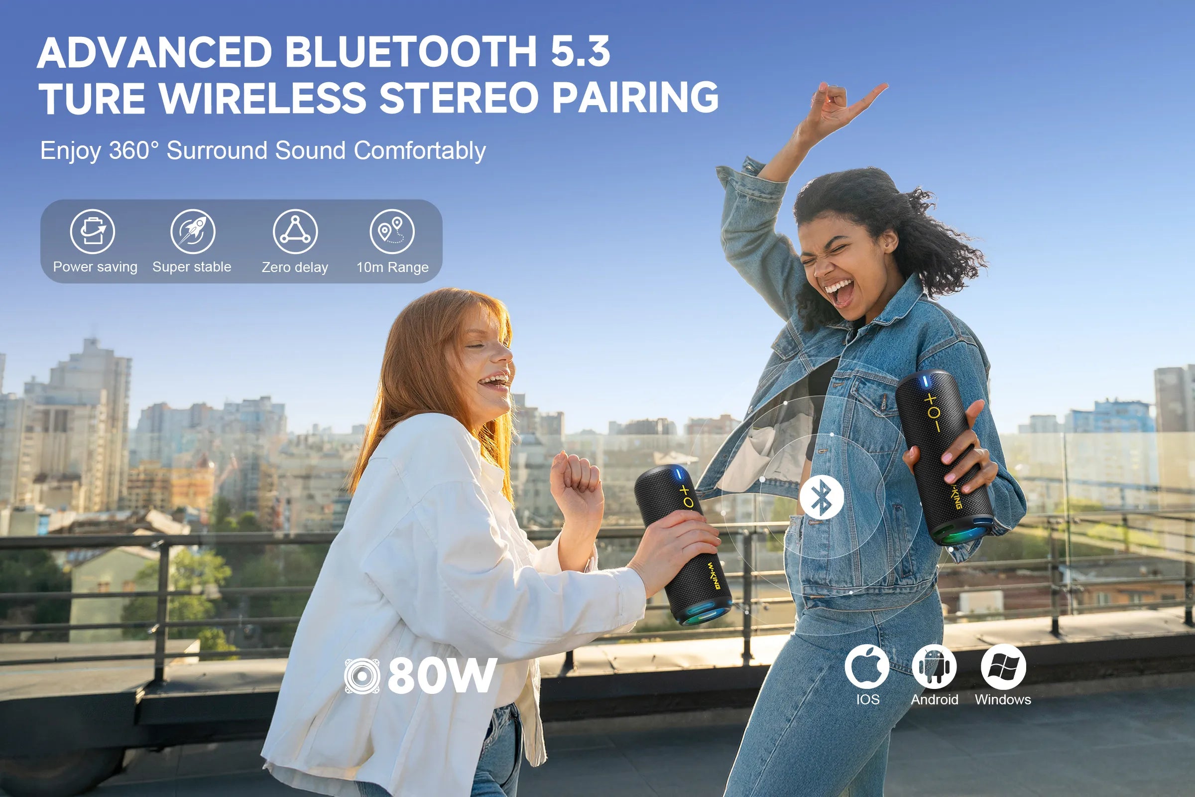 Ideal for house parties, backyard BBQs, game nights and outdoor events, the W-KING D320 fits every moment. 80W surround sound, stable connection and multi-system compatibility make it your ideal party companion.